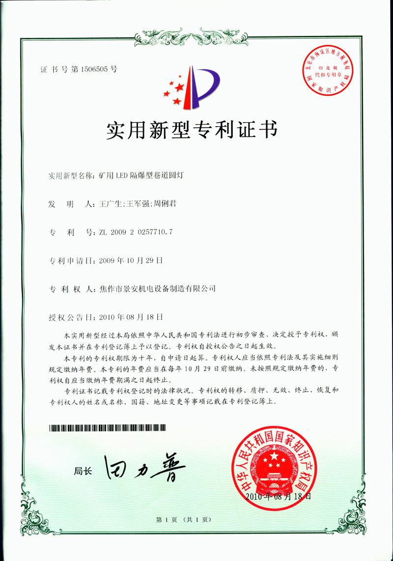 焦作景安公司始終堅(jiān)持“以科技為先導(dǎo),以市場為導(dǎo)向”的發(fā)展戰(zhàn)略,不斷進(jìn)行新產(chǎn)品的研制和開發(fā),在國家“六五”到“九五”期間,承擔(dān)和參與了國家多項(xiàng)科技攻關(guān)項(xiàng)目。并被中國電器工業(yè)協(xié)會(huì)評定為“質(zhì)量可信產(chǎn)品”。特別是在礦用防爆燈領(lǐng)域,礦用隔爆型半導(dǎo)體(LED)照明燈具,2008年列入國家火炬計(jì)劃,獲2009年河南省工業(yè)和信息化廳的科技成果二等獎(jiǎng),并擁有多項(xiàng)國家專利。 |